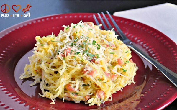 Recipe: http://peaceloveandlowcarb.com/2014/01/spaghetti-squash-carbonara-low-carb-gluten-free-primal.html